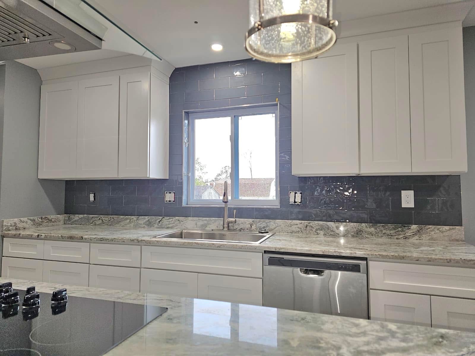 To start, we set up a dust shield around the kitchen to contain any debris and sealed off the AC vents to keep dust from spreading. After installing the perfect slider window that brought in natural light, we then carefully selected the backsplash tile through a collaborative process with the client, utilizing FaceTime and exchanging photos to ensure the perfect match. During installation, we applied concrete board and laid the tiles meticulously, resulting in a beautiful finish that delighted our clients.