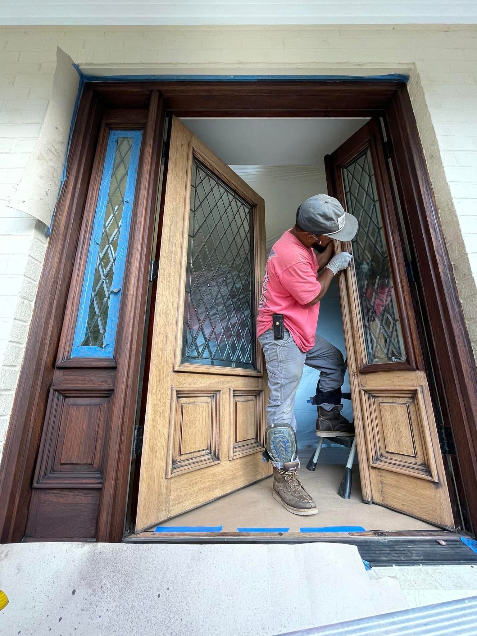 Suzieand Mike, loyal clients of ours, came to us with a door in desperate need of revival. The polyurethane was bubbling, and the color was uneven and splotchy. To ensure an immaculate finish, we sanded the entire door by hand, achieving a perfectly smooth surface. We then applied two coats of rich mahogany stain and topped it off with four coats of clear polyurethane for a durable, glossy finish. This project exemplifies how we go the extra mile without cutting corners. Now, their door not only looks stunning but is also protected against future weathering, showcasing the importance of regular home maintenance in avoiding unexpected, costly repairs.